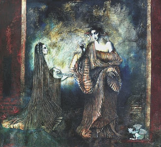 She draws on these experiences when creating her work. Influenced by Master Symbolists such as Redon and Moreau, her images are infused with a visual language of the soul.